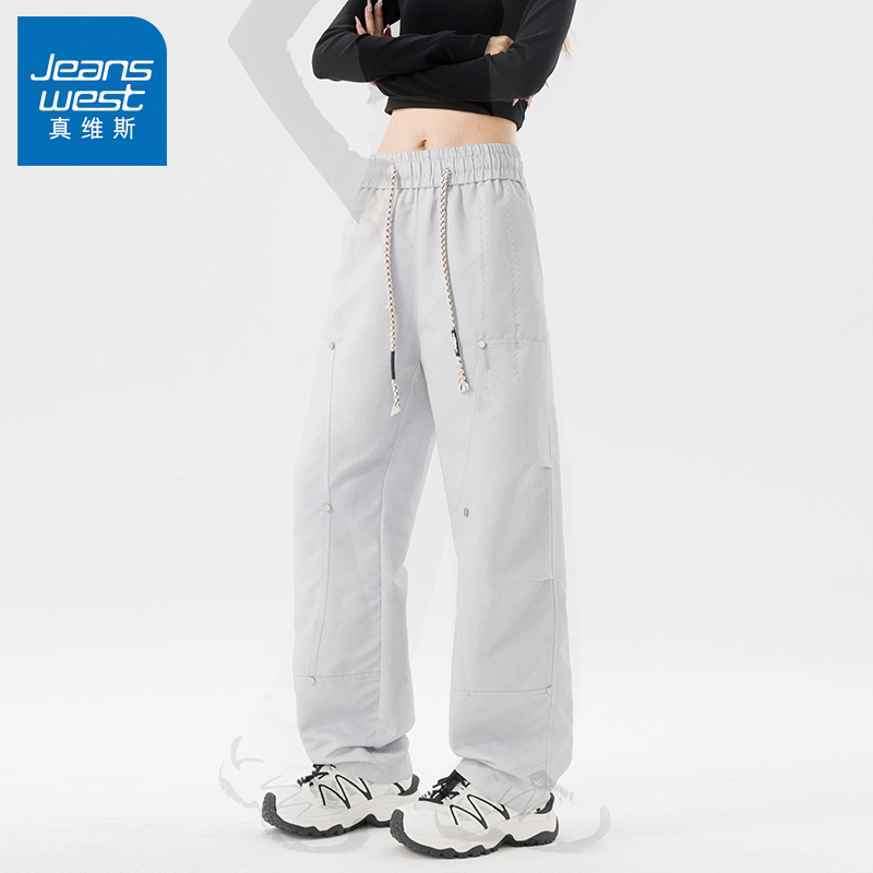 休闲显瘦卫裤 白灰色运动裤 高腰直筒宽松阔腿美式 春秋季 女2025新款