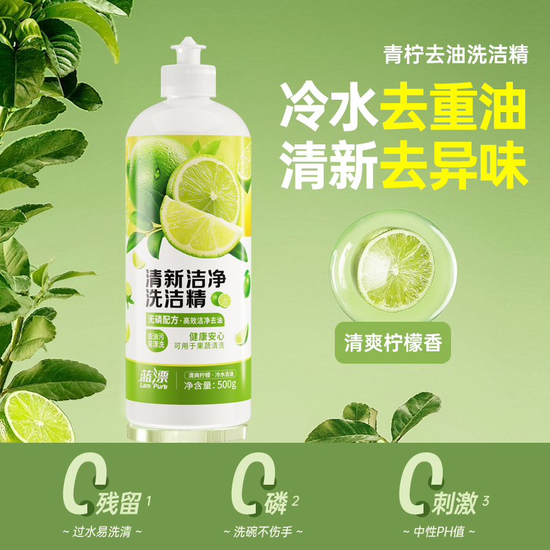 蓝漂洗洁精500g小瓶柠檬香实惠装 家用去油祛味洗碗餐具清洁剂 正品
