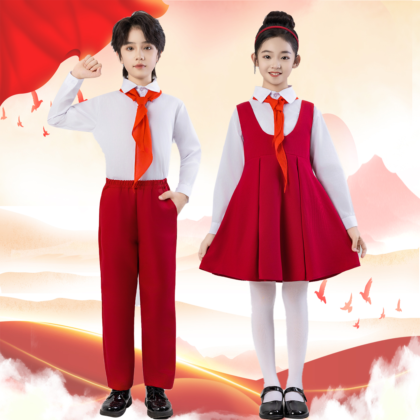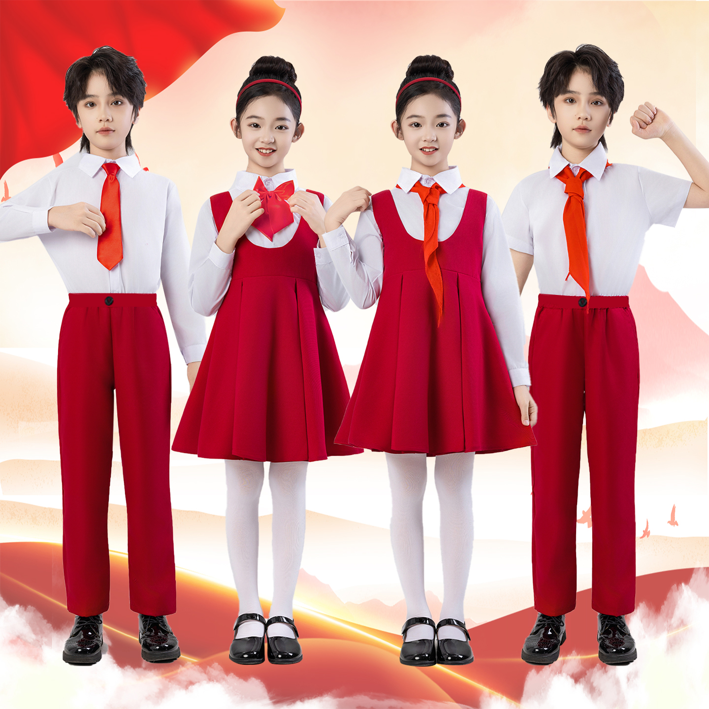 儿童朗诵合唱演出服小学生女演讲比赛服装 红色歌爱国主题故事国庆