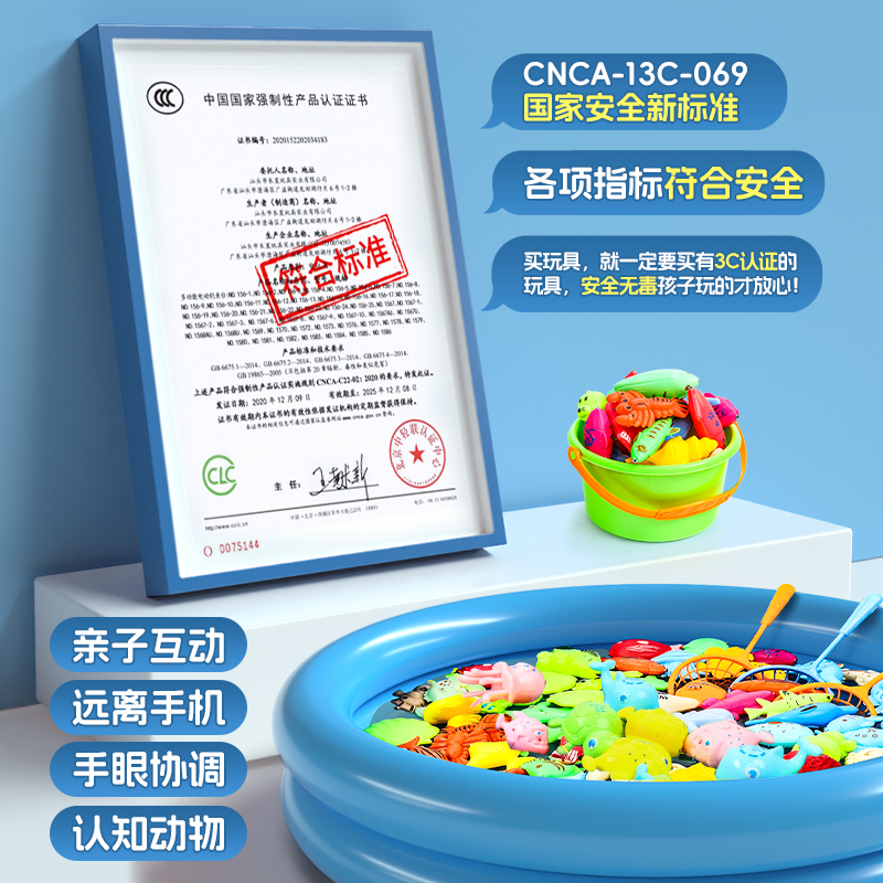 钓鱼配件捞鱼玩具儿童益智1到3岁周岁男女宝宝礼物磁吸鱼竿戏水池