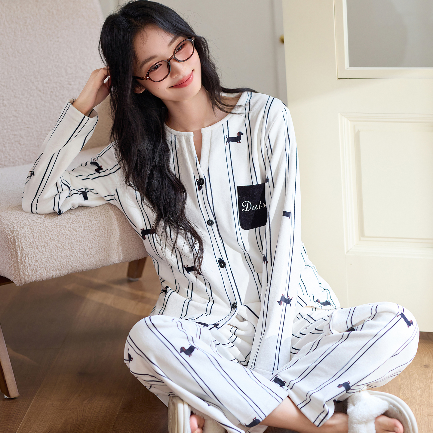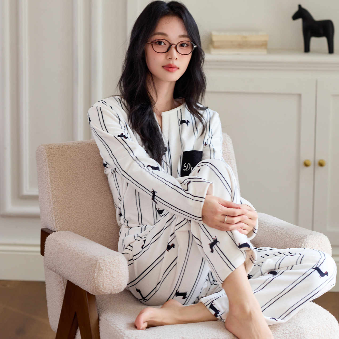 维密宅度假系列奶舒绒睡衣轻柔抗静电保暖家居服套装 女可外穿