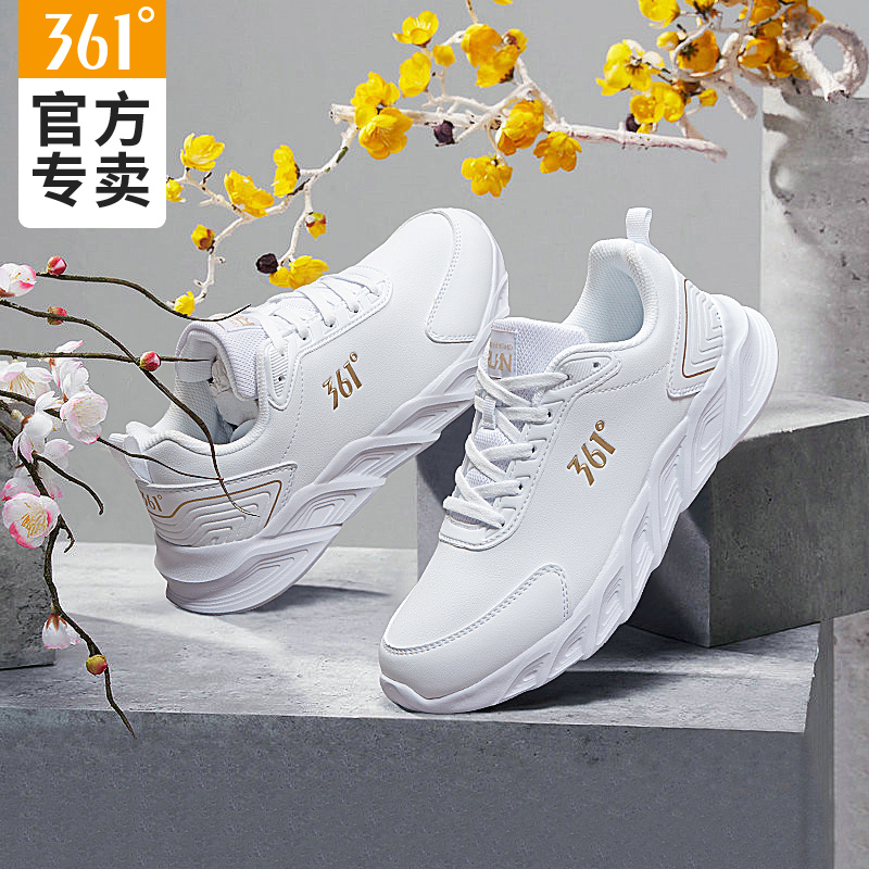 新款 防水休闲鞋 正品 安踏女鞋 皮面跑步鞋 冬季 女士软底小白鞋 运动鞋