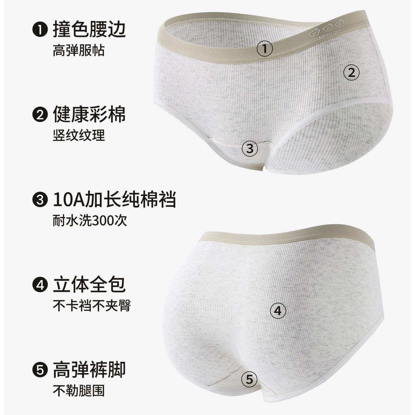 草本初色加长裆纯棉内裤 女10A抑菌档无痕婴儿棉彩棉中腰三角短裤