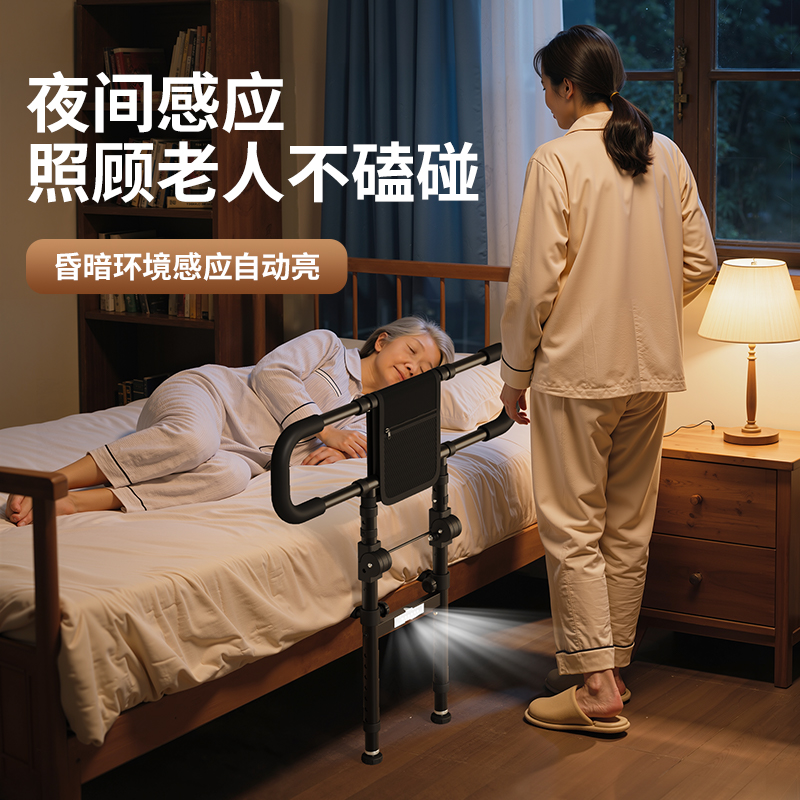 带灯老人床边扶手起床辅助器卧床病人孕妇起身助力架落地式 可折叠