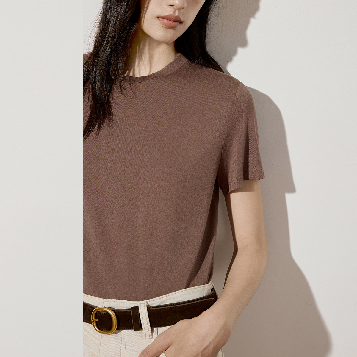 新品 t恤女上衣正肩宽松简约休闲2025秋季 圆领短袖 OCHIRLY欧时力