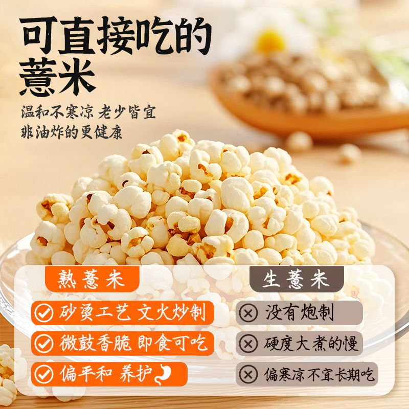 山姆超市炒薏米仁开袋即食官方旗舰店原味爆米花炒熟湿祛薏苡仁脆