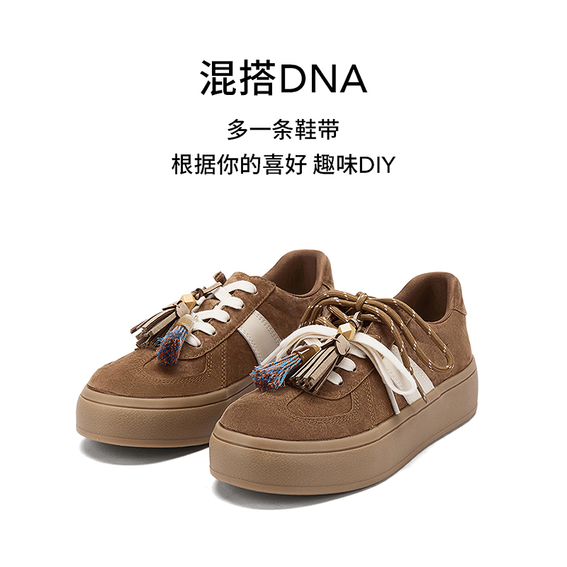女2025年冬季 增高女鞋 新款 百搭板鞋 子 厚底休闲鞋 热风复古德训鞋