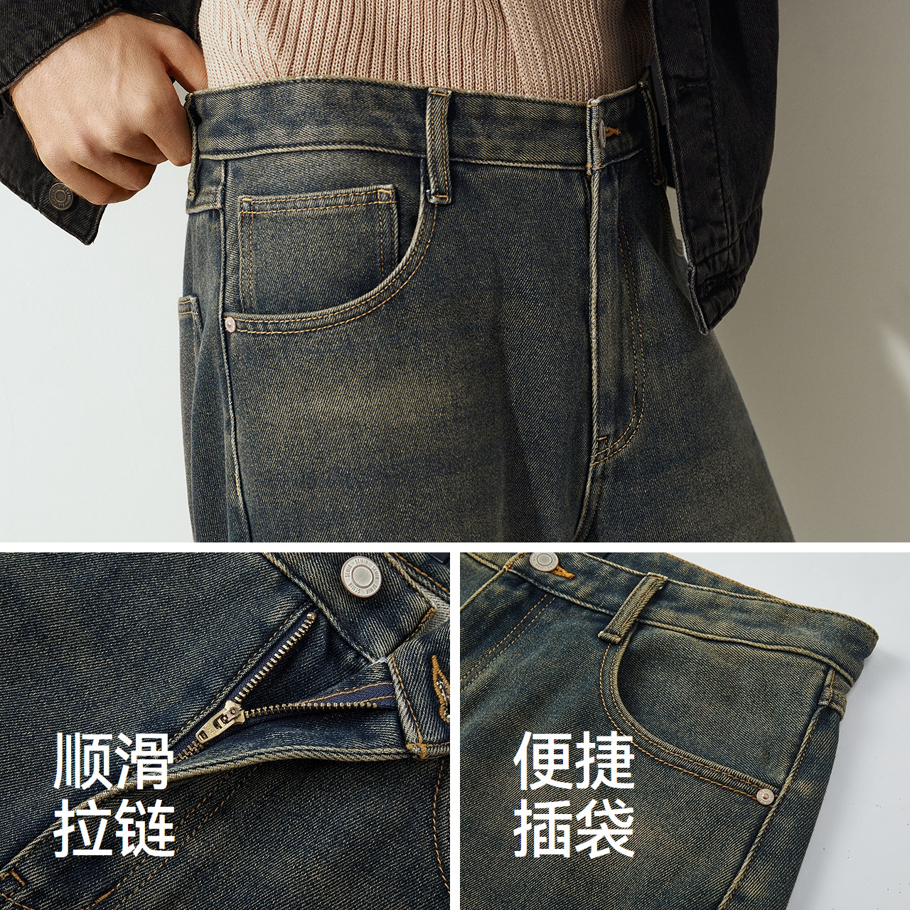 2025冬新款 王安宇同款 宽松弧形裤 男做旧复古阔感弯刀裤 森马牛仔裤