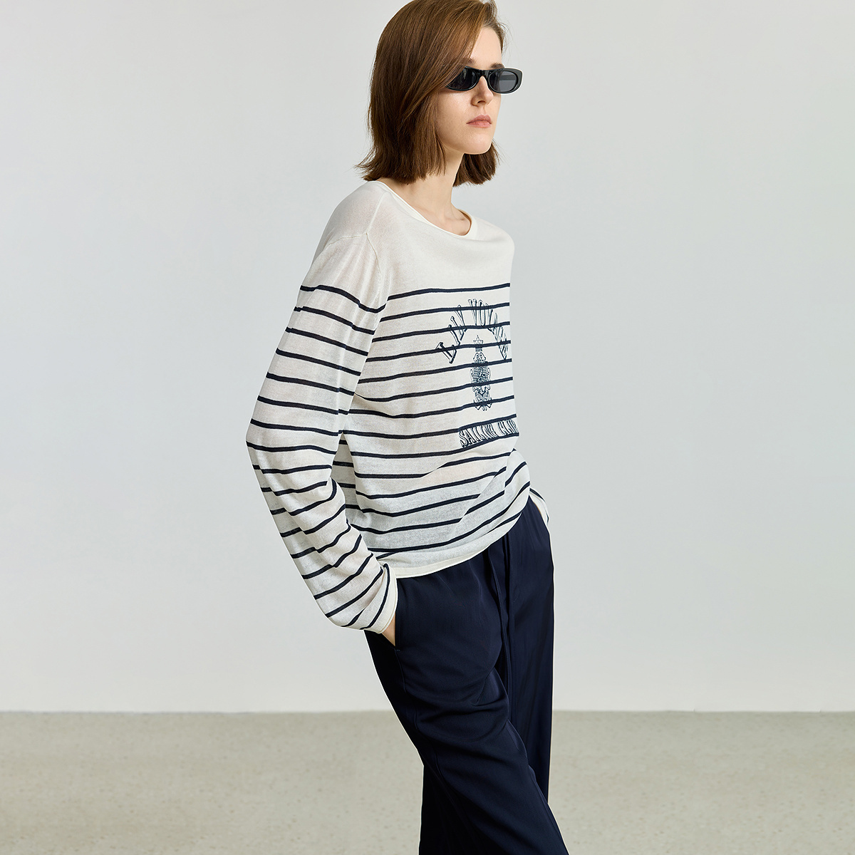 莱赛尔亚麻老钱提花条纹通勤针织衫 LILY2025秋新款 女 商场同款