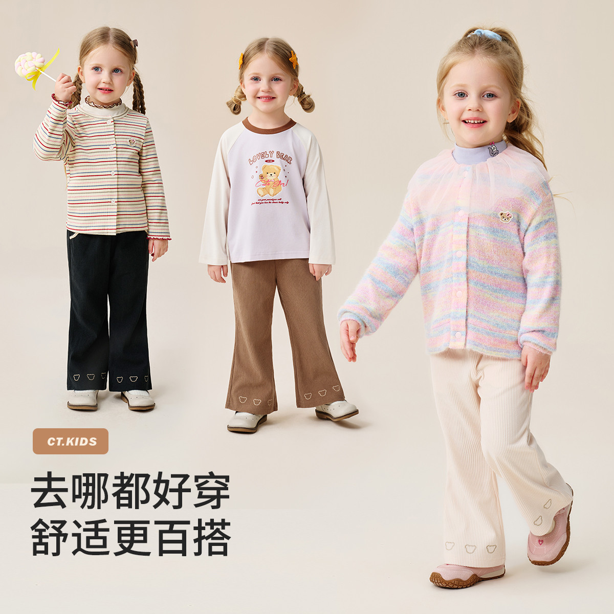 弹力舒适喇叭裤 女宝宝阔腿裤 儿童裤 长裤 子女童休闲裤 精典泰迪秋款