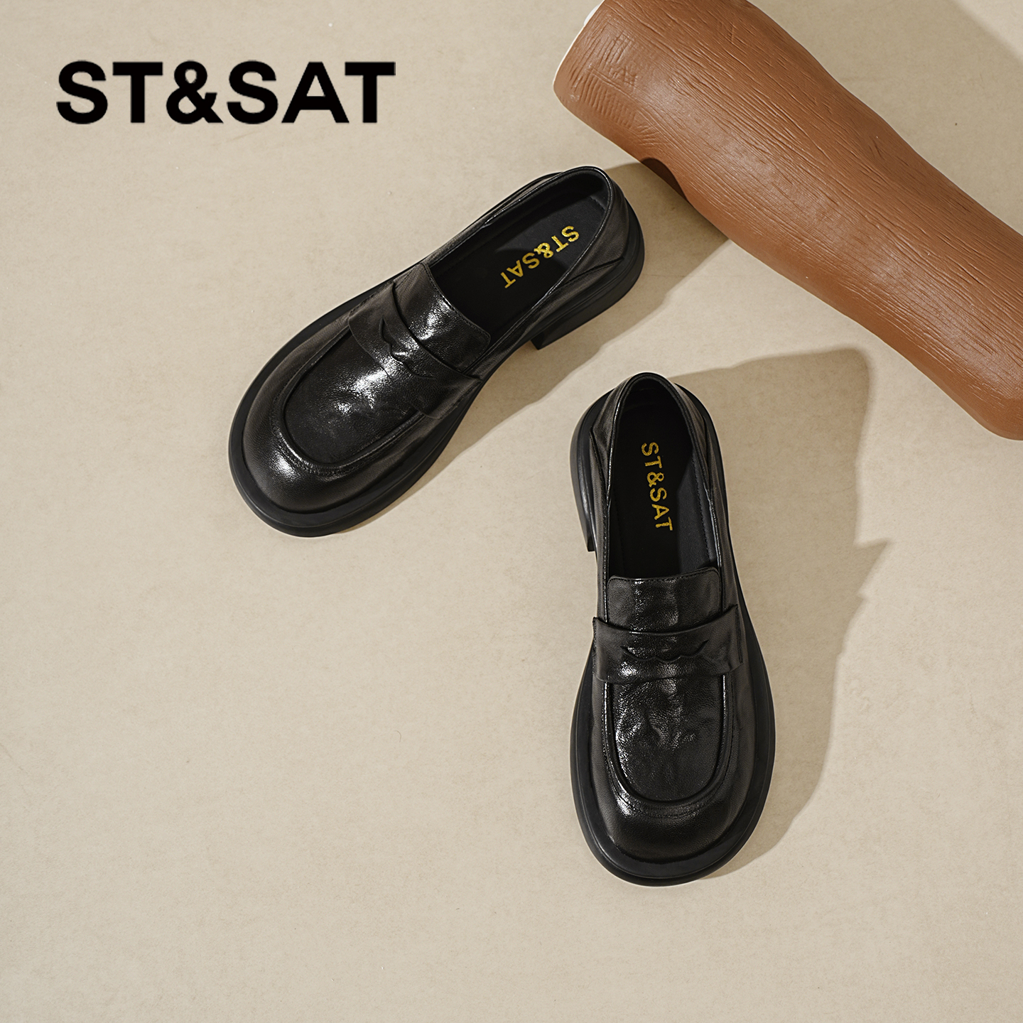 粗跟百搭单鞋 英伦风通勤小皮鞋 女 女2025新款 星期六黑色厚底乐福鞋