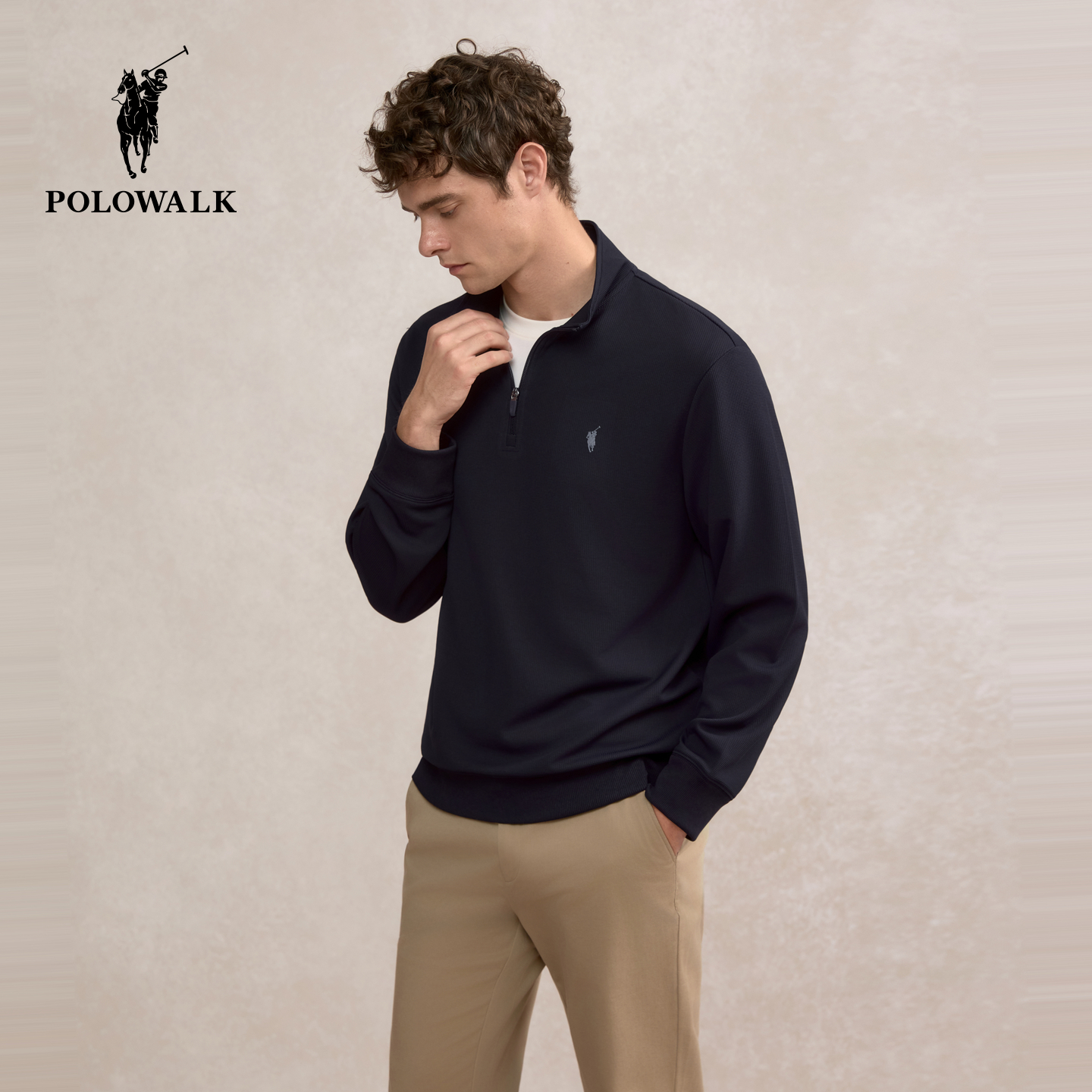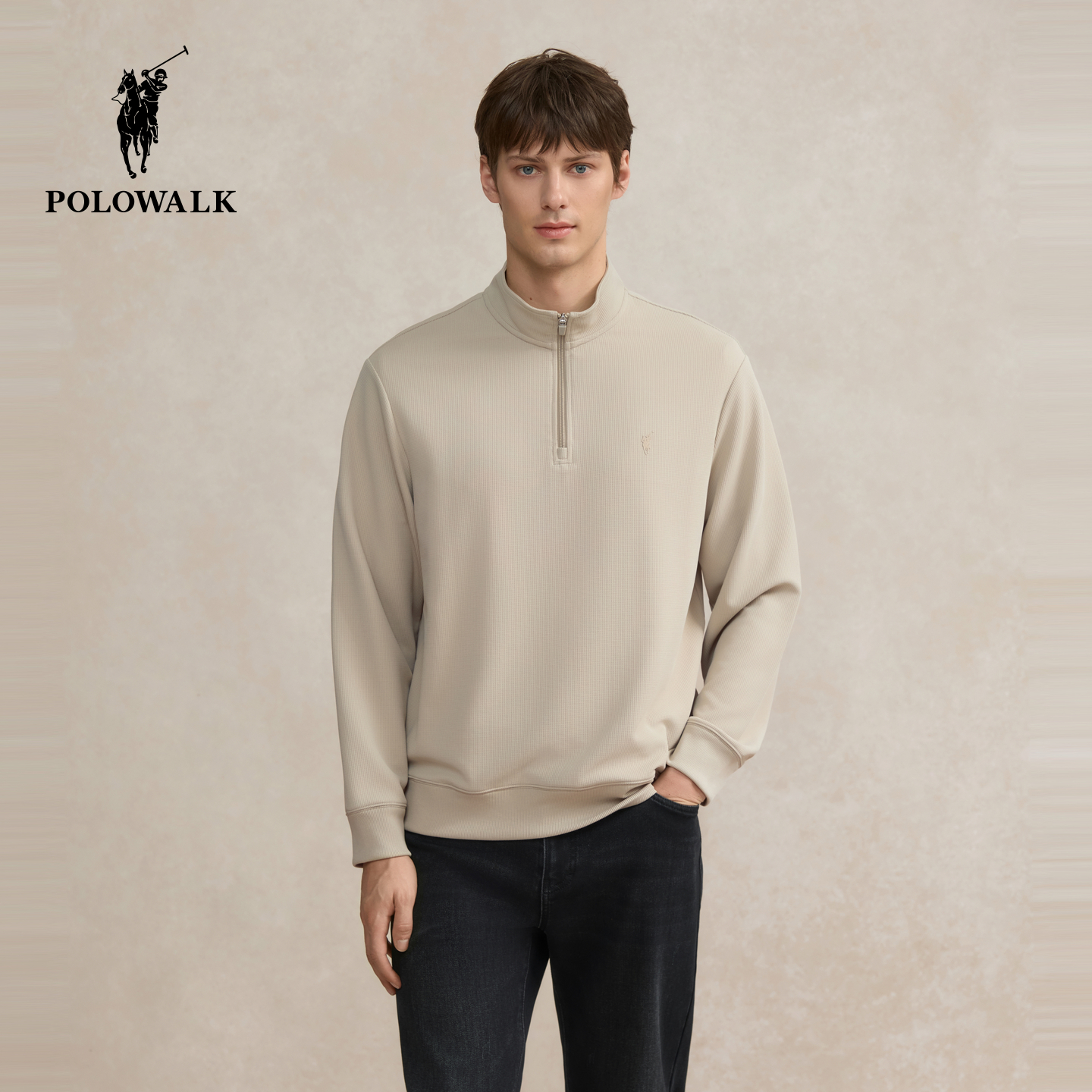 男式 POLOWALK男装 新品 T恤2025秋季 商务通勤半拉链套头上衣男 长袖