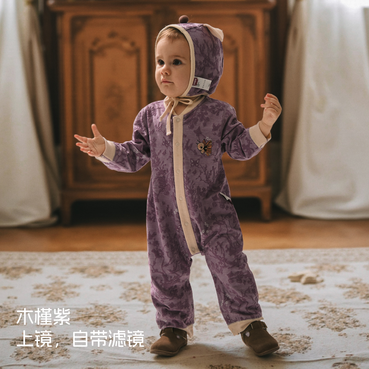 长袖 aqpa爱帕宝宝秋冬新品 前开连体衣雕花工艺哈衣爬服 繁花信使