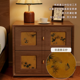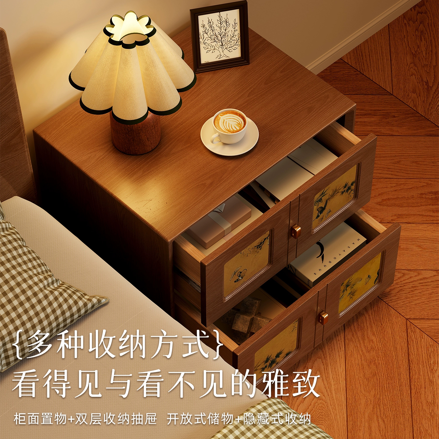 实木床头柜中古风卧室落地床边柜子高级感法式 复古收纳柜子置物架