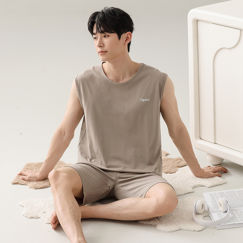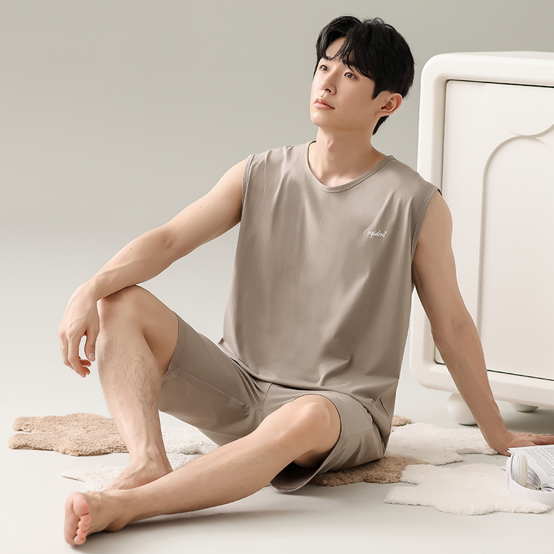 新款 冰丝感背心短裤 爆款 家居服套装 休闲家居服睡衣 男无袖 2025秋季