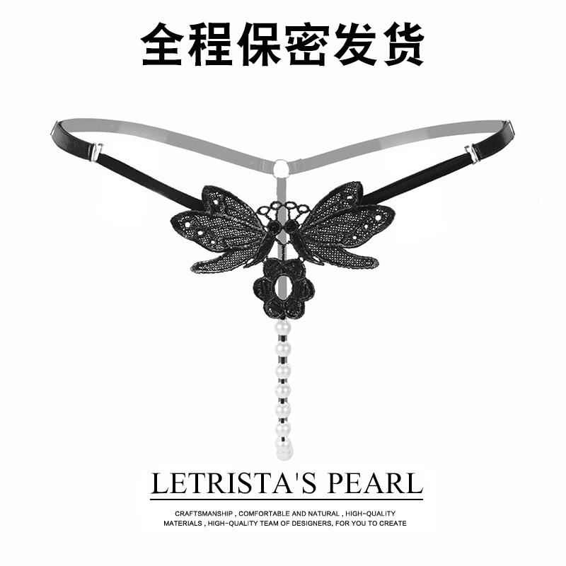 性感纯欲内裤 女透明蕾丝激情内衣火辣情侣黑色透视珍珠无痕丁字裤