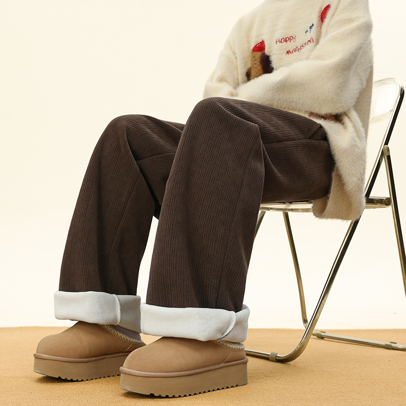 卫裤 加绒运动裤 高级宽松直筒垂感休闲阔腿美式 2024新款 子女秋冬季