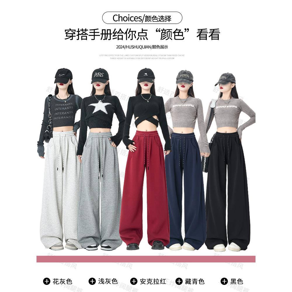 女2025春秋款 子大码 新款 休闲卫裤 高腰宽松直筒慵懒美式 运动阔腿裤