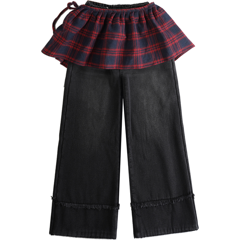儿童秋冬新款 长裤 保暖毛边阔腿裤 子冬装 加厚宽松裤 女童加绒牛仔裤
