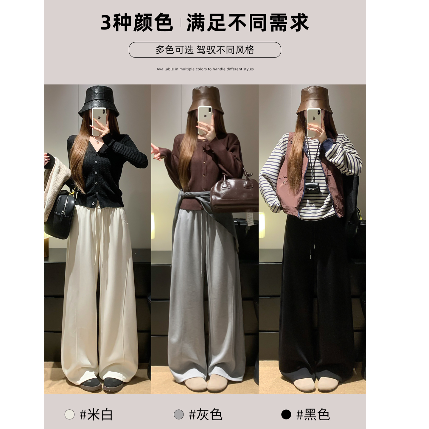 女款 休闲弯刀香蕉阔腿裤 2025新款 高腰宽松垂感卫裤 秋季 白色运动裤