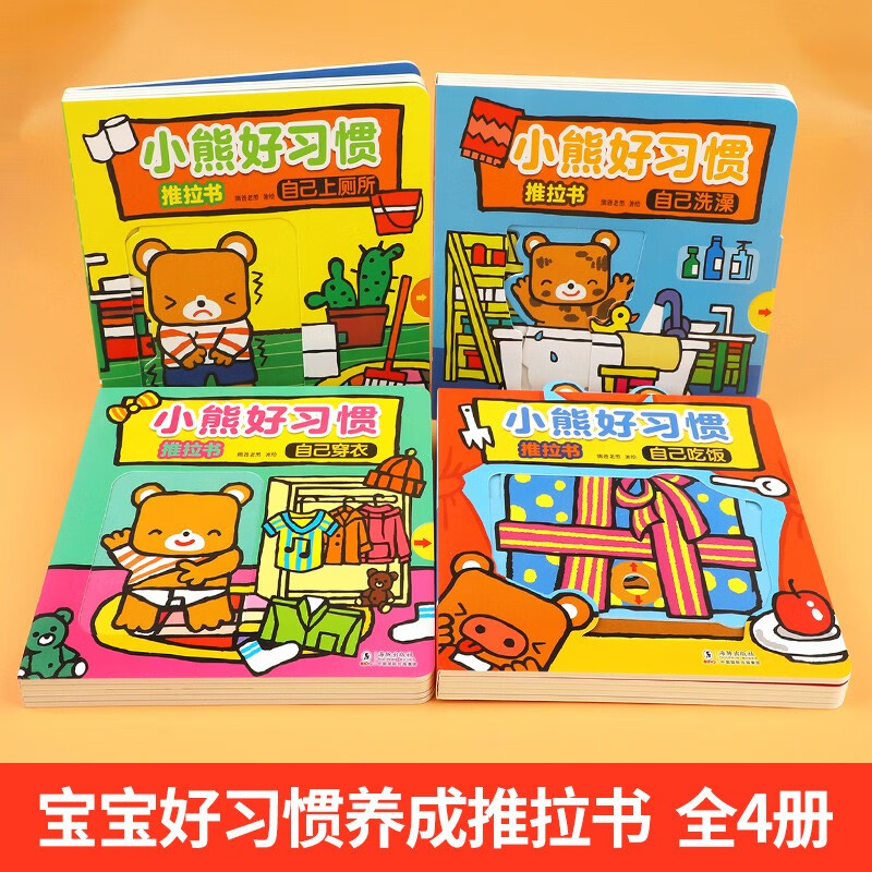 全12册 小熊爱数学 幼儿好习惯养成手指推拉书儿童读物0 3岁趣味百科推拉益智启蒙认知翻翻书 小熊好习惯推拉书 小熊爱科学
