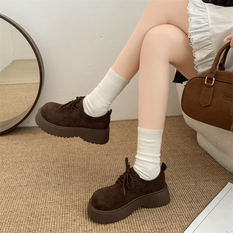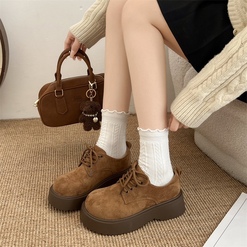 女2025新款 博肯单鞋 春季 复古百搭小个子时尚 季 松糕厚底系带勃肯鞋