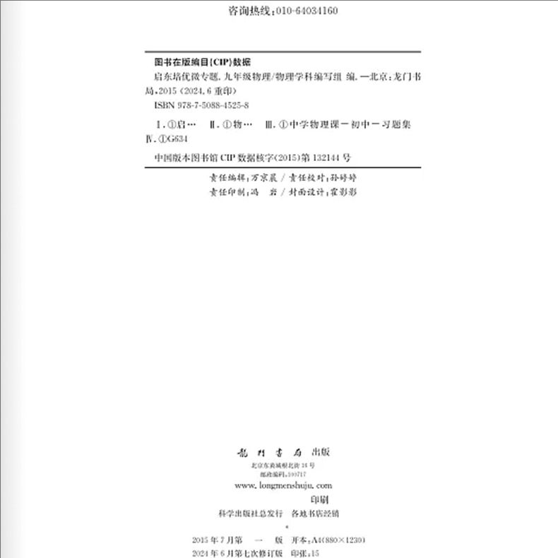 物理 初三九年级 9年级初中物理专项练习作业本复习资料题训练提高解题思维解题方法揭示思维规律 启东培优微专题 2026龙门书局
