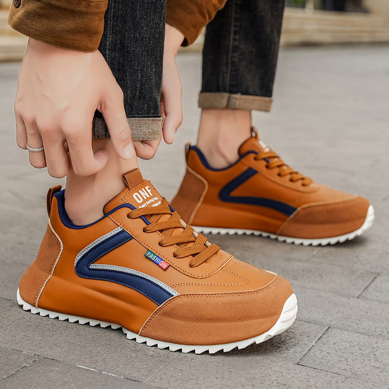 秋季 轻便软底百搭跑步鞋 2025新款 男士 皮面防水休闲运动鞋 阿甘男鞋