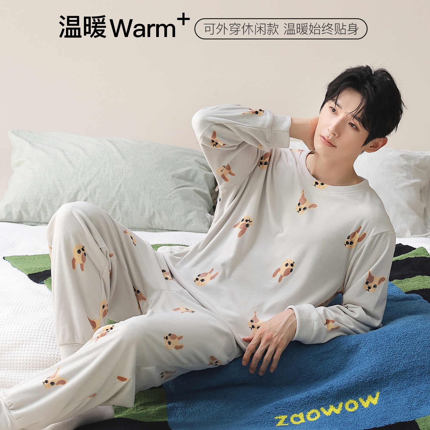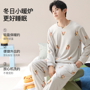 保暖海岛绒睡衣可外穿家居服套装 猫人休闲风睡衣男2025秋冬季 新款