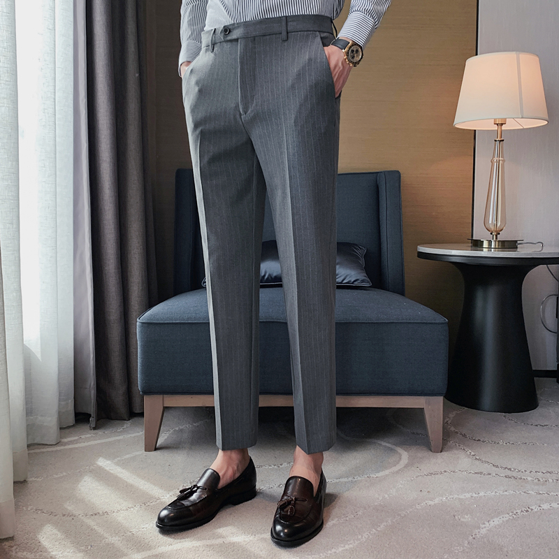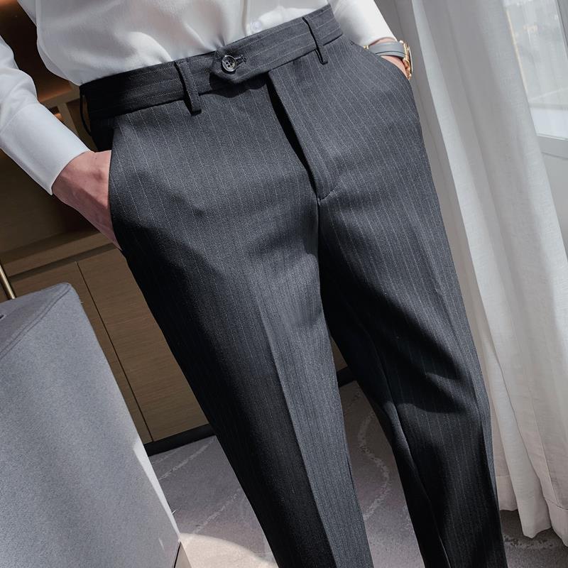 男西装 抗皱垂顺修身 裤 九分商务休闲黑色高级灰长裤 子男 男士 西裤