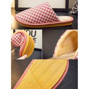 1006e 家用室内防滑毛绒保暖家居情侣布拖鞋 冬拖鞋 女新款