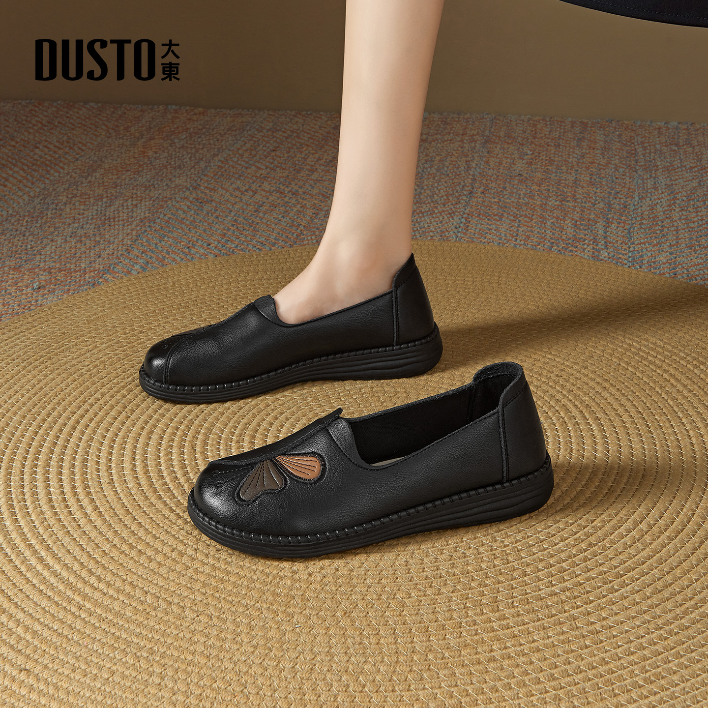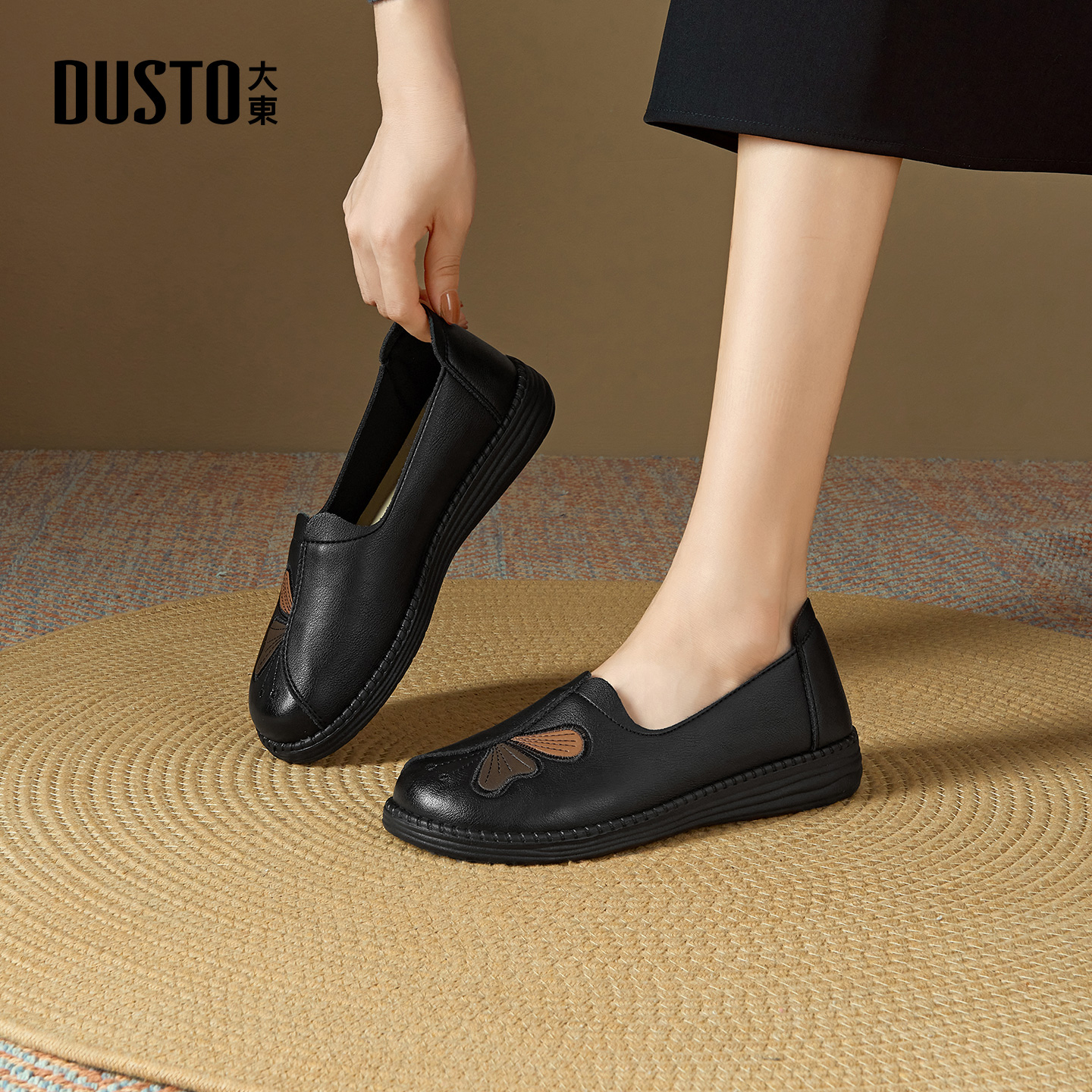 女鞋 黑色单鞋 2026秋季 舒适平底低跟圆头软底深口鞋 新款 大东妈妈鞋