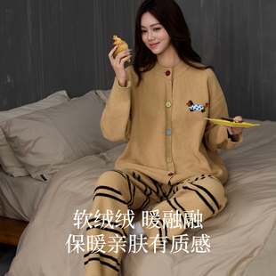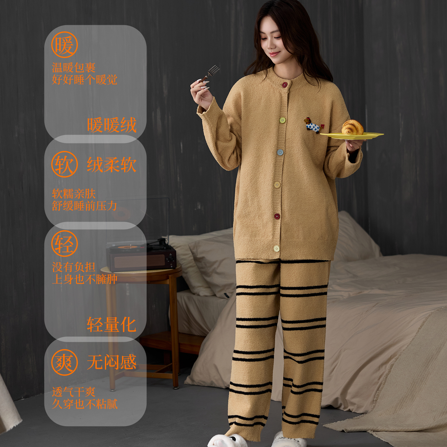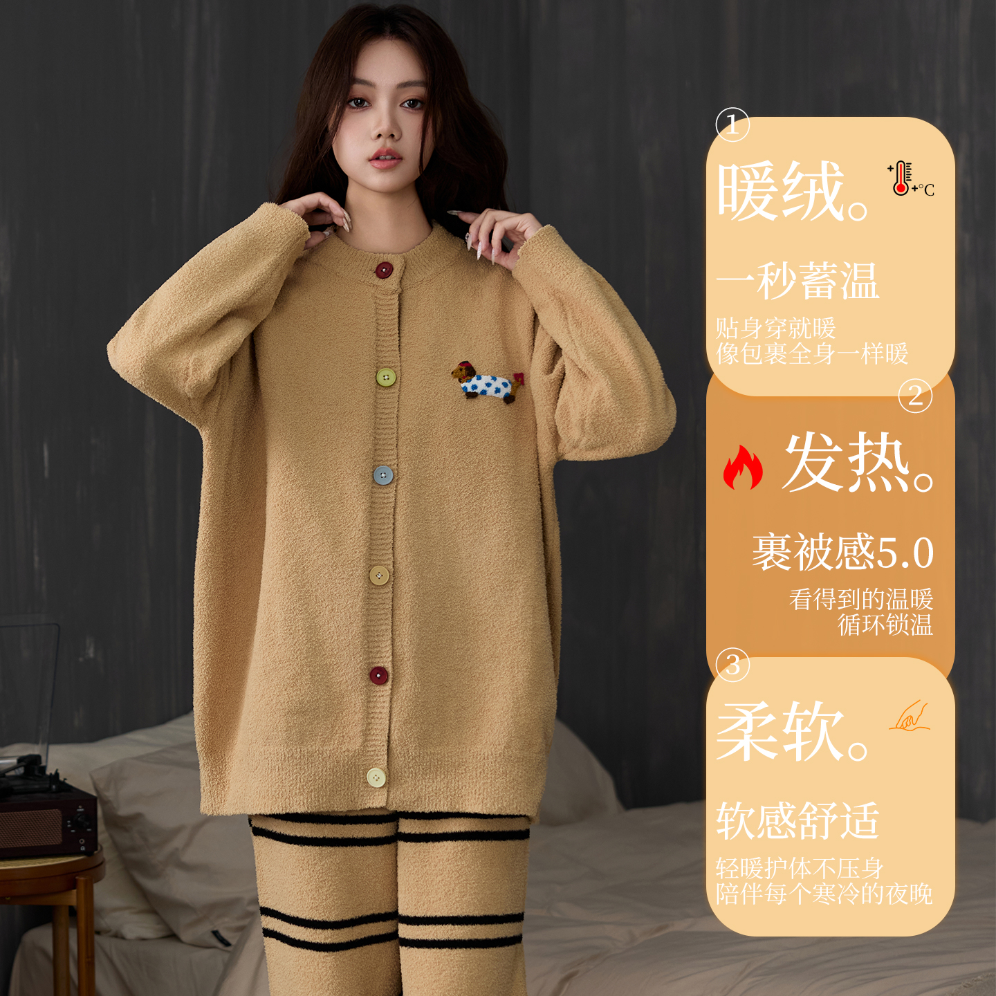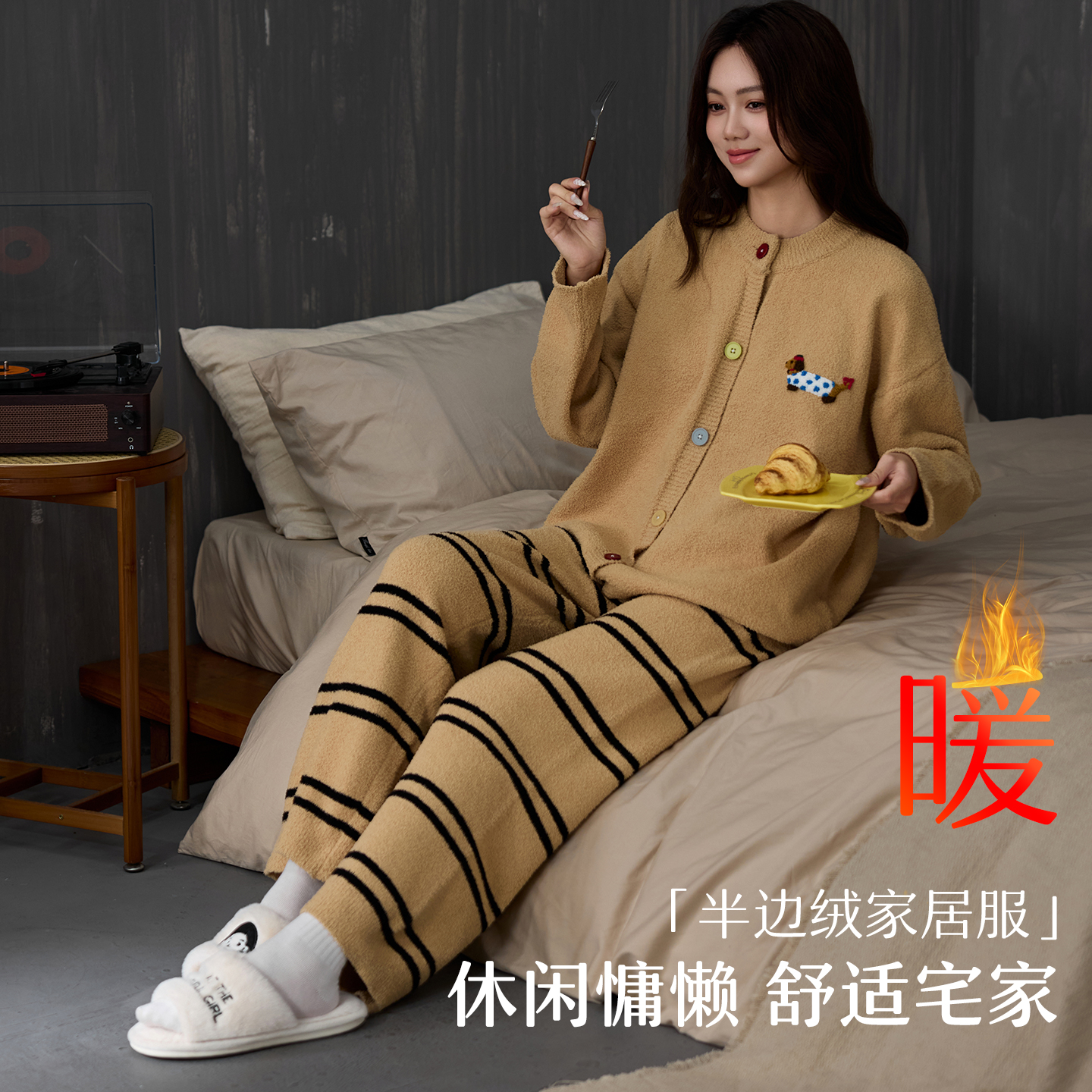 珊瑚绒家居服 加厚加绒秋冬天甜美开衫 乐姿梦半边绒睡衣女款 秋冬季