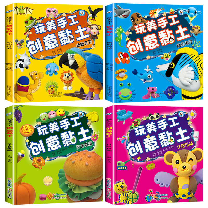 9岁宝宝早教启蒙快乐手工坊 全4册 儿童易学实用美术手工丛书3 幼儿园DIY粘土捏橡皮泥示范 完美收工创意黏土彩泥制作教程书