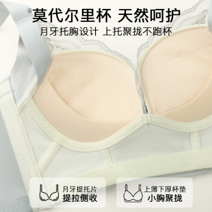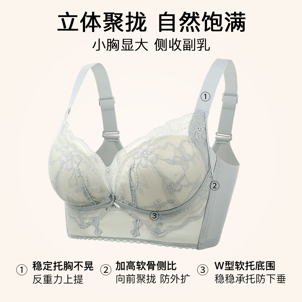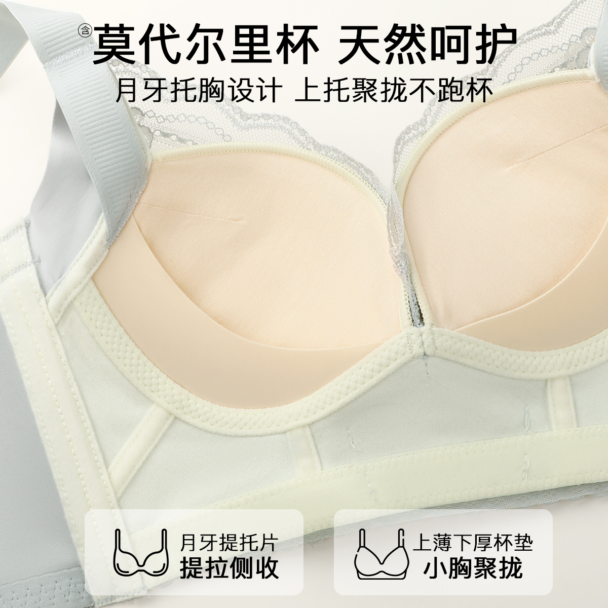 好奇蜜斯小胸聚拢内衣女薄显大无钢圈蕾丝文胸罩套装 防下垂夏 法式