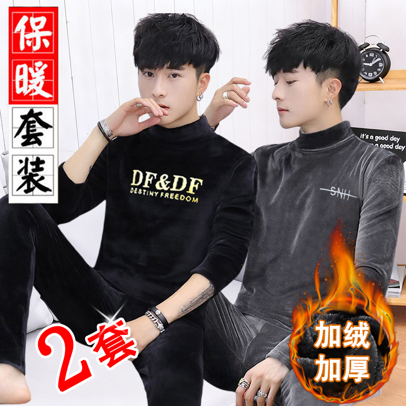 女圆领抗静电厚棉半高领秋冬 套装 三枪保暖内衣男士 纯棉秋衣秋裤