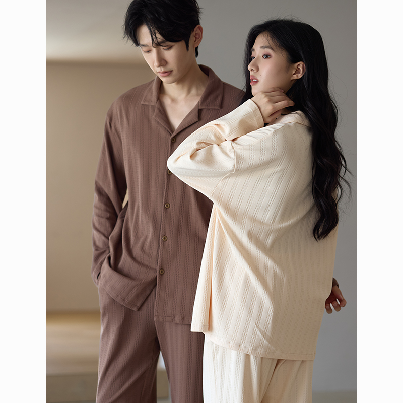 套装 情侣宽松春秋季 长裤 纯棉翻领长袖 家居服可外穿家居服 节情侣款