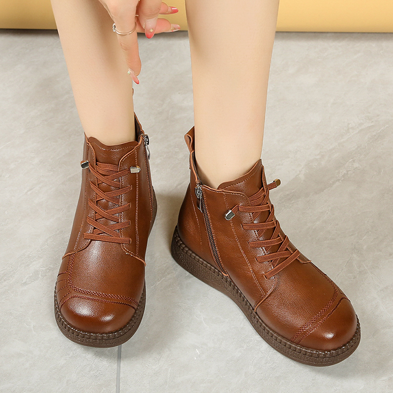 老人靴子短靴 女加绒保暖中老年奶奶软底牛筋底防滑鞋 冬季 妈妈棉鞋