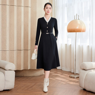 优雅气质针织修身 V领长袖 中长裙1216339 连衣裙秋季 HM女装