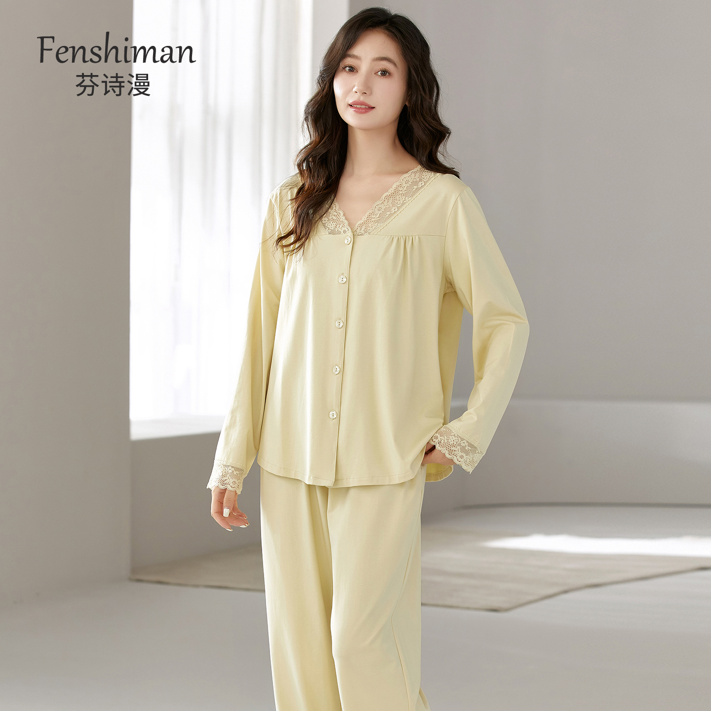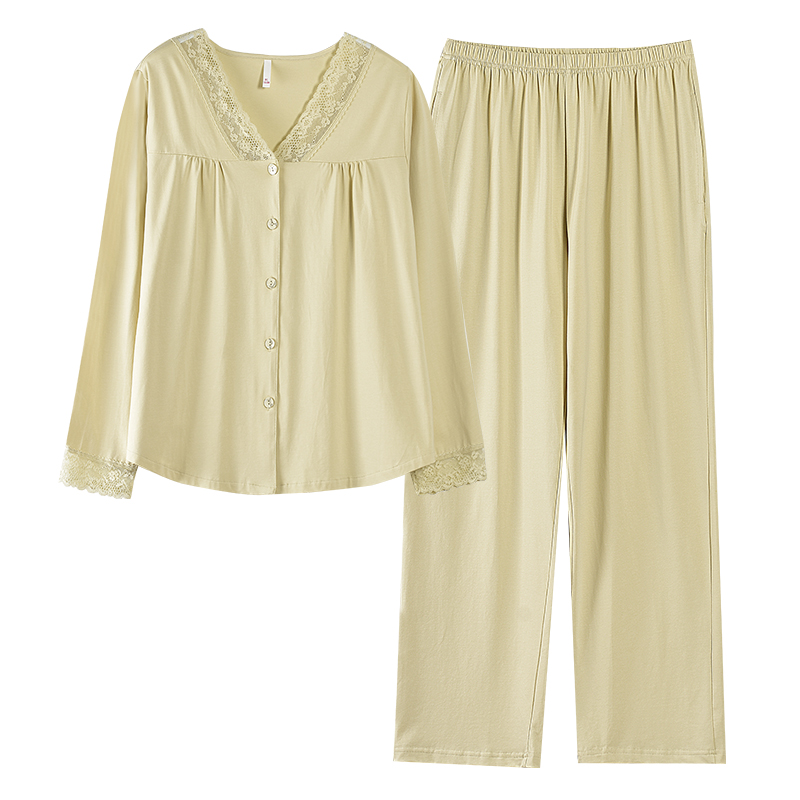 妈妈款 睡衣女春秋纯棉长袖 V领开衫 2025新款 花边高级感家居服 秋季