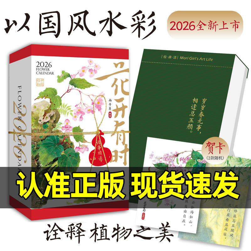 赠贺卡 马年创意可撕原创设计ins风台历桌面摆件礼物礼品水彩花卉插画集手账24节气一日一诗词绘森活 花开有时日历2026年手撕新款