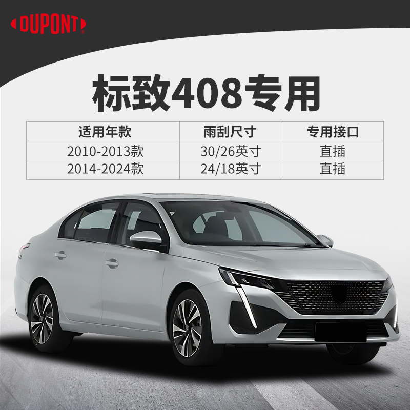 杜邦雨刮器无骨雨刷片适用于标致408汽车2014款 胶条18静音19 原装