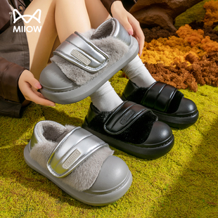 包跟外穿保暖加绒室内居家防滑棉鞋 2025新款 女冬季 猫人防水棉拖鞋