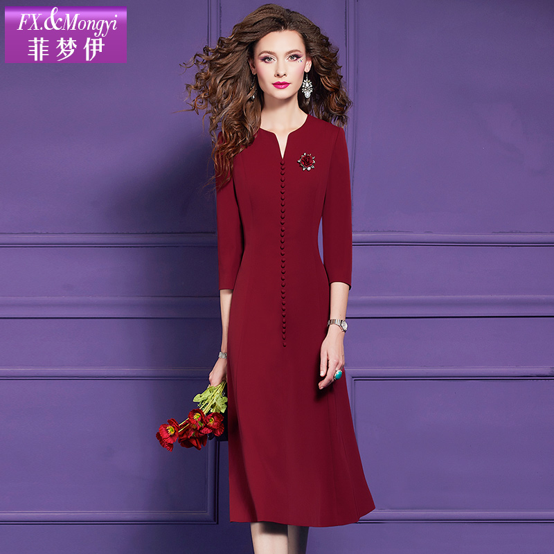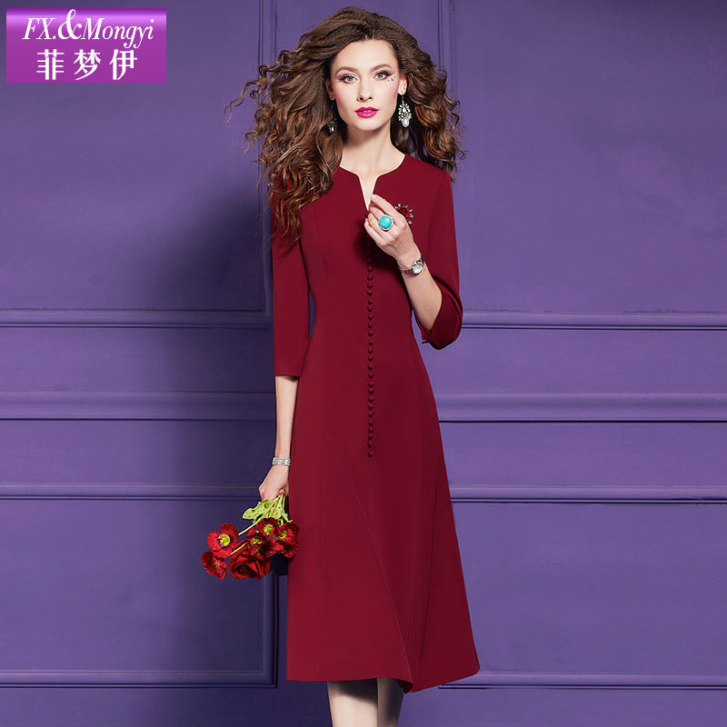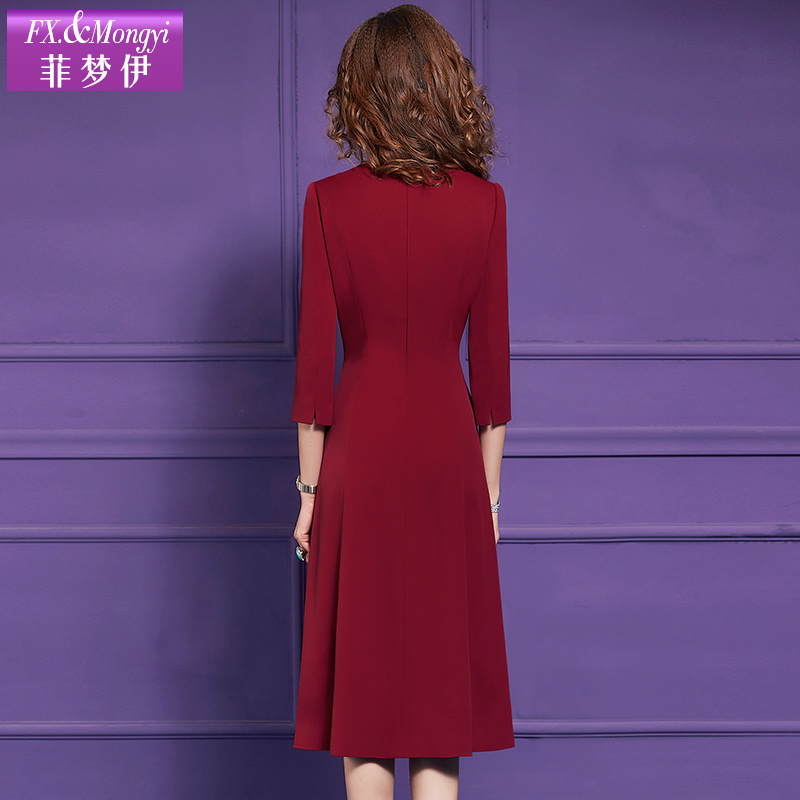 修身 高级感轻熟显瘦时尚 气质A字裙子 新款 菲梦伊红色连衣裙女秋装