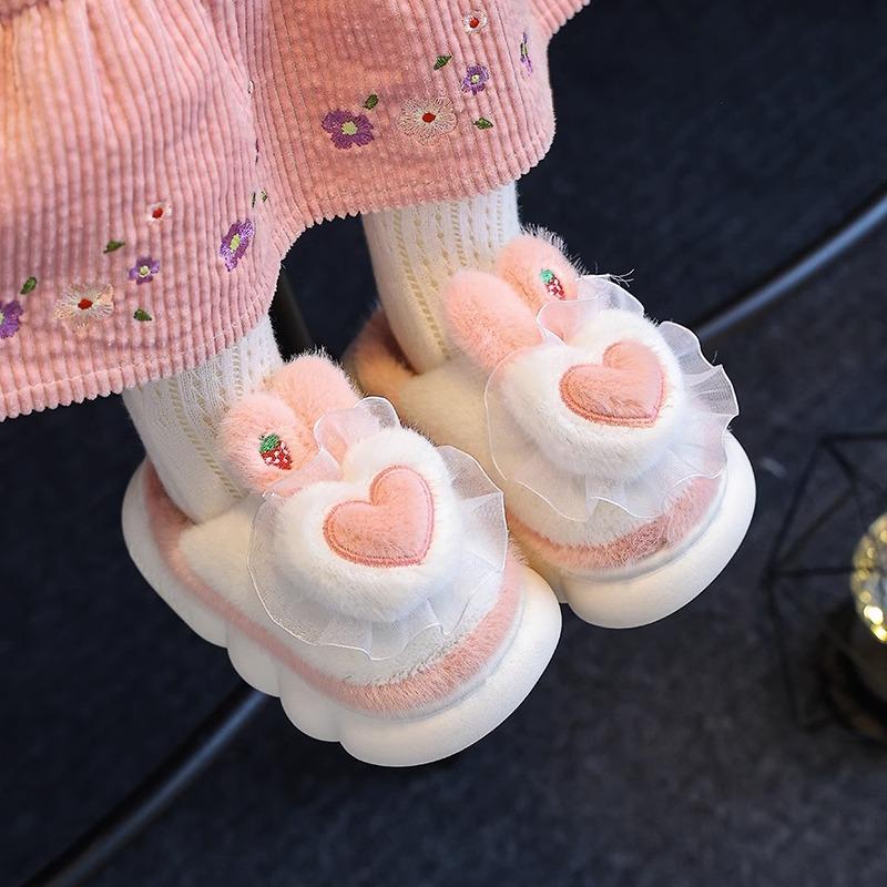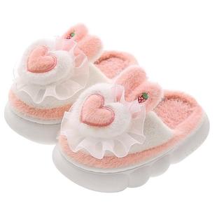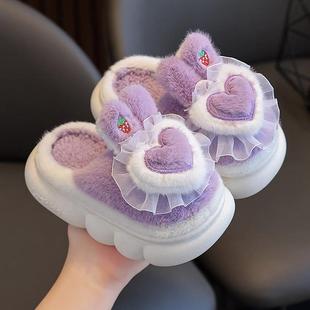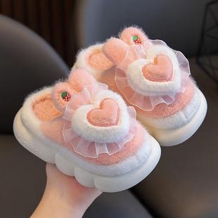女孩宝宝保暖防滑室内包跟毛拖拖鞋 冬季 女童2025新款 儿童棉拖鞋