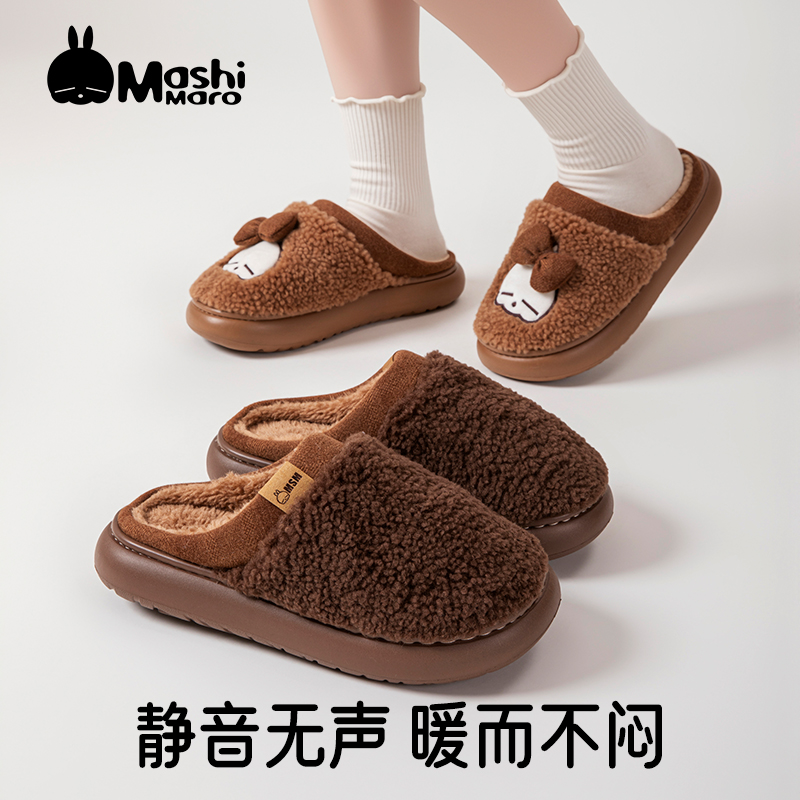 家居室内保暖加绒防滑高级感冬天家用拖鞋 冬季 女 男士 流氓兔棉拖鞋
