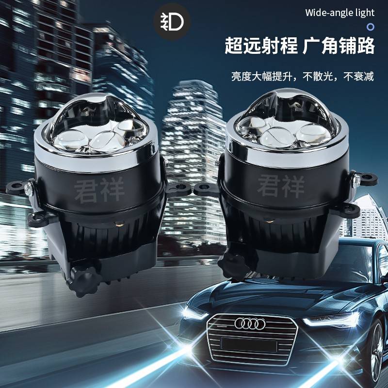 LED三寸通用无损三激光雾灯双光透镜改装 远近一体黄白光远光炮