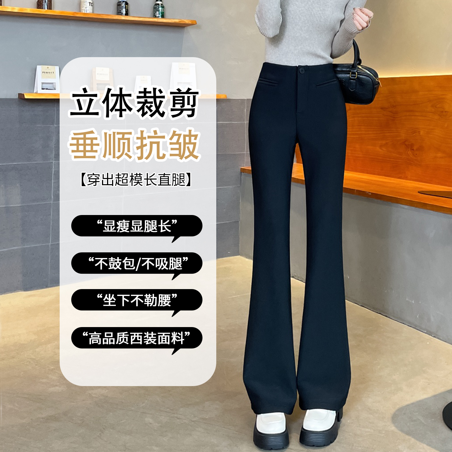 小个子高腰喇叭裤 黑色西装 高级感垂感加绒微喇裤 女秋冬2025新款 裤