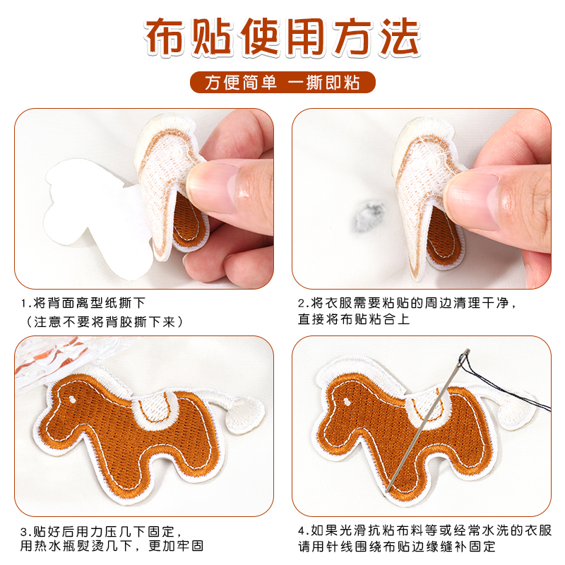 小马自粘补丁贴羽绒服衣服裤 大号补洞刺绣布贴 子免缝修补神器新款