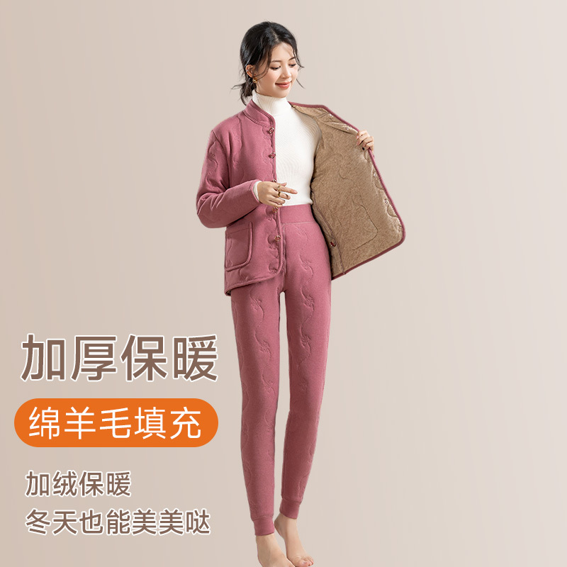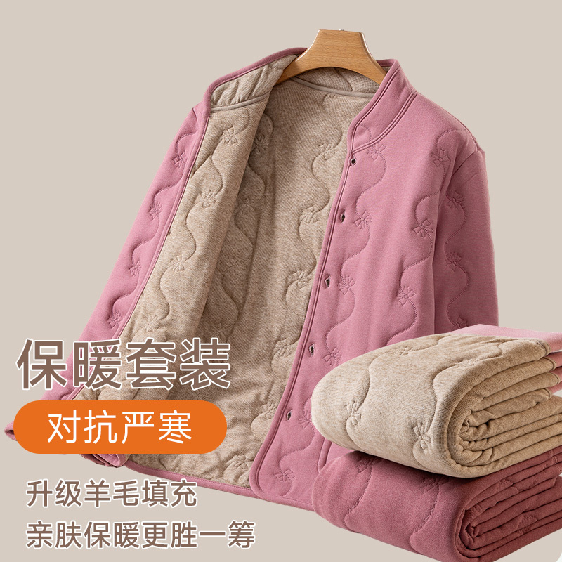 套装 加绒加厚东北防寒中老年妈妈居家棉衣棉裤 保暖衣新款 女士冬季
